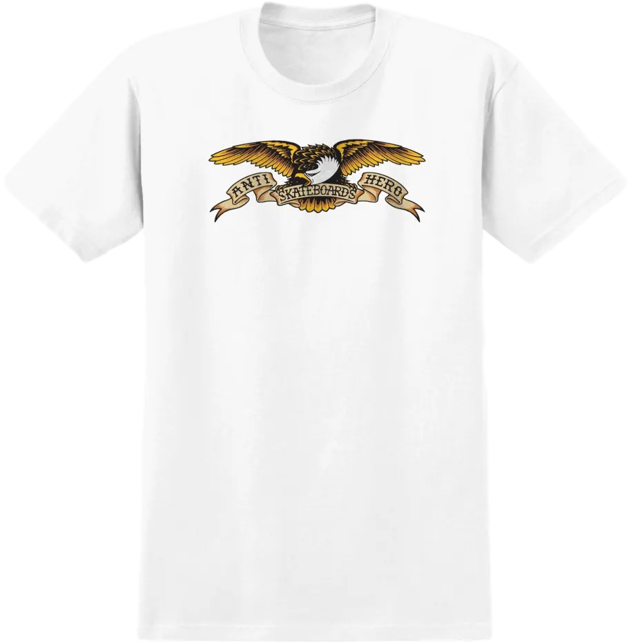 The Antihero Short Sleeve Eagle Shirt features the brand's iconic eagle logo screen printed across the chest. The shirt is thick, standard fit and constructed from 100% cotton. The interior neck details are screened for itch-free comfort.