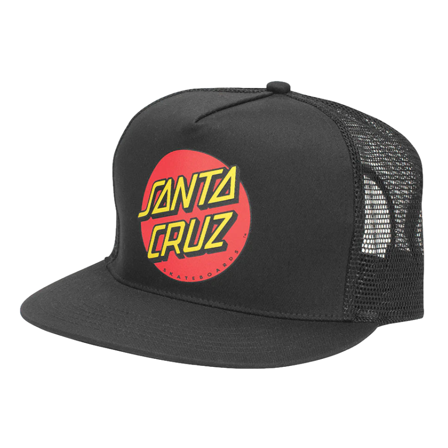 Santa Cruz Classic Dot Mesh Trucker Hat. The Classic Dot high profile 5 panel mesh hat features front Santa Cruz Classic Dot screen print.