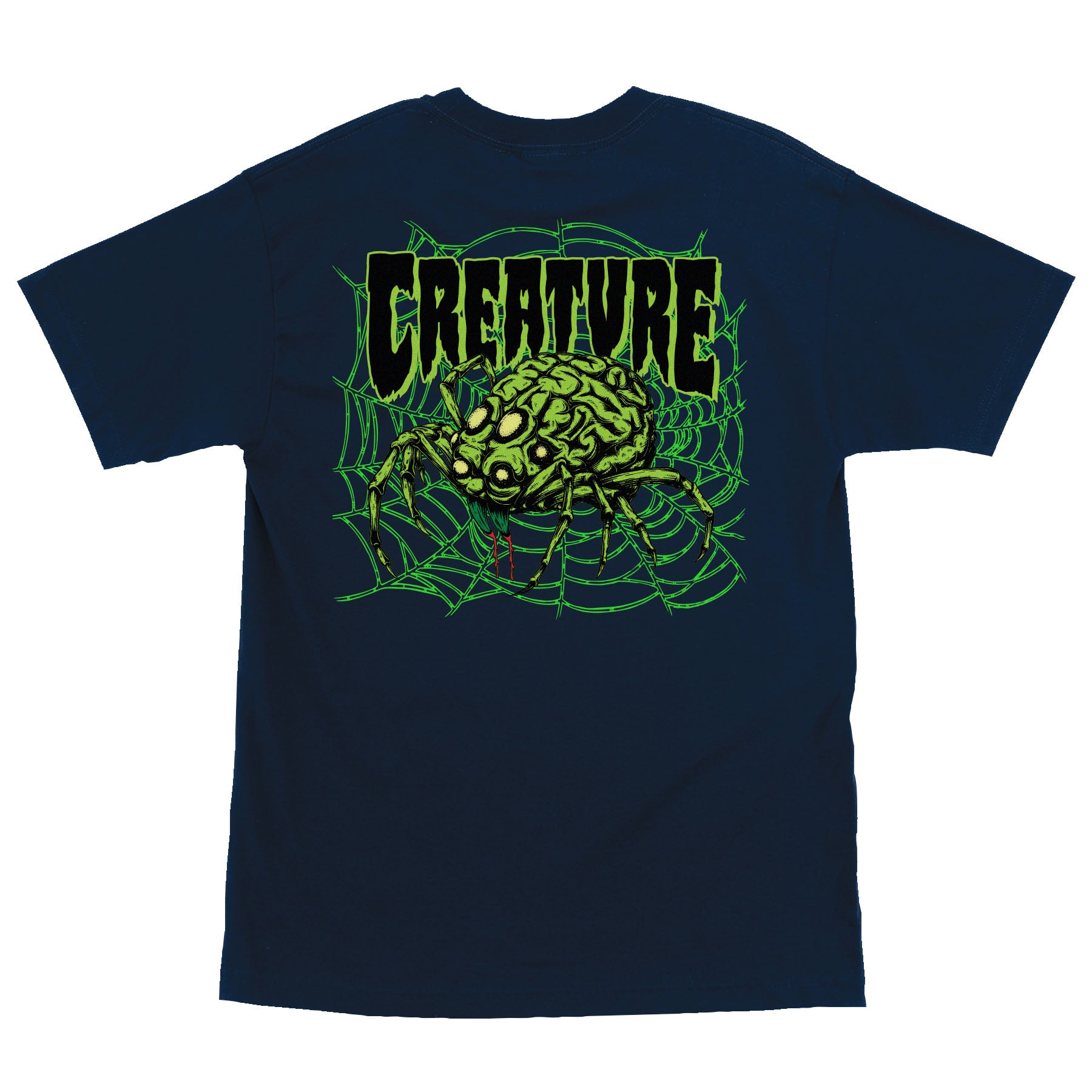 Keep it Creach' in the latest t-shirts and apparel from Creature Skateboards. The new Spindel men's regular fit short-sleeve t-shirt features medium left chest and large back Creature Spindel logos printed in soft hand ink. Artwork designed by Jeff Harper for Creature Skateboards
