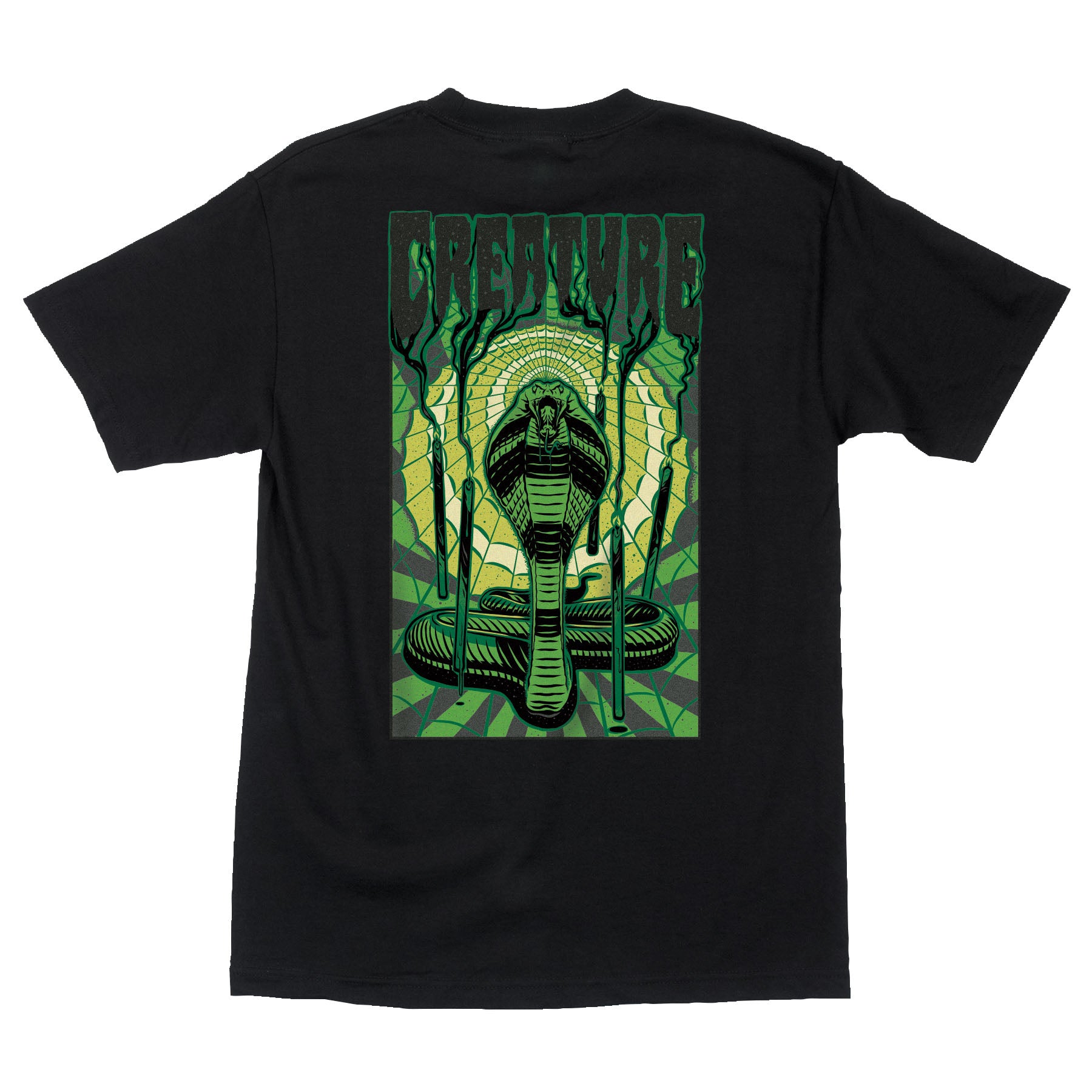 Support the horde in the latest t-shirts from Creature Skateboards. The new Creature Swindler men's short-sleeve, regular fit cotton t-shirt features small front and large back Creature Swindler logos printed in soft hand ink. Creature Skateboards and apparel.