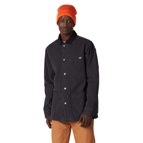 uthentic to the core, Dickies Duck Canvas Chore Coat merges workwear utility with a reimagined look representative of today’s cultural evolution. Featuring a single chest pocket with pencil division, along with two top entry hip pockets, this coat provides plenty of practical storage. Constructed of a tightly woven canvas Duck fabric that offers best in class durability and comfort, this coat is highlighted by contrasting corduroy detail at the collar and interior hem. Sized to fit regular, the finish has been heavily stone washed to achieve distinct color variation. To ensure you stay cozy as the seasons change, we’ve lined this contemporary classic with soft, heavyweight high-pile fleece for added warmth. Workwear reimagined but with an uncompromising commitment to handcrafted vintage workwear style and construction, you can pair this jacket with Dickies Double Front Duck Pants to complete your contemporary uniform look.