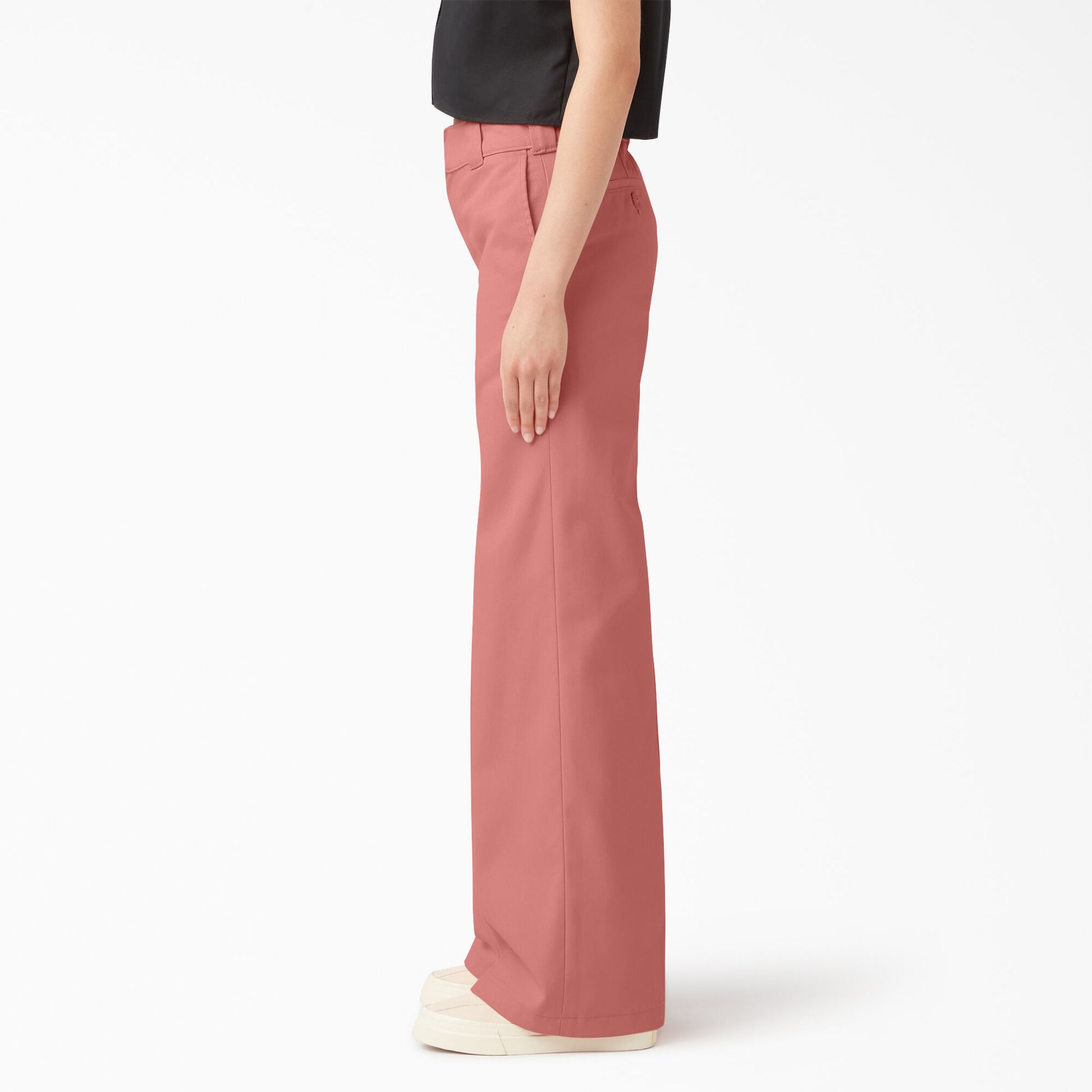 The Dickies Women's Wide Leg Work Pant is rooted in retro work wear styling from the Factory era of the 1940s and 1950s and features archival fabrication with a modern silhouette to recapture the character of the American worker. As part of the Clean Utility Core Collection, these wide leg work pants offer straightforward styling in a stonewash for a softer hand feel. The contoured waistband ensures a flattering fit with a high rise that sits right under the navel, perfect to pair with the Relaxed Cropped Work Shirt from the same collection. Complete with a zip front and hook and eye closure, these flat front work pants provide added utility with front and back pockets. Staying true to the spirit of authentic workwear, the modern High Rise Work Pants are finished with a clean hem and Dickies traditional tricolor logo on the right back pocket.