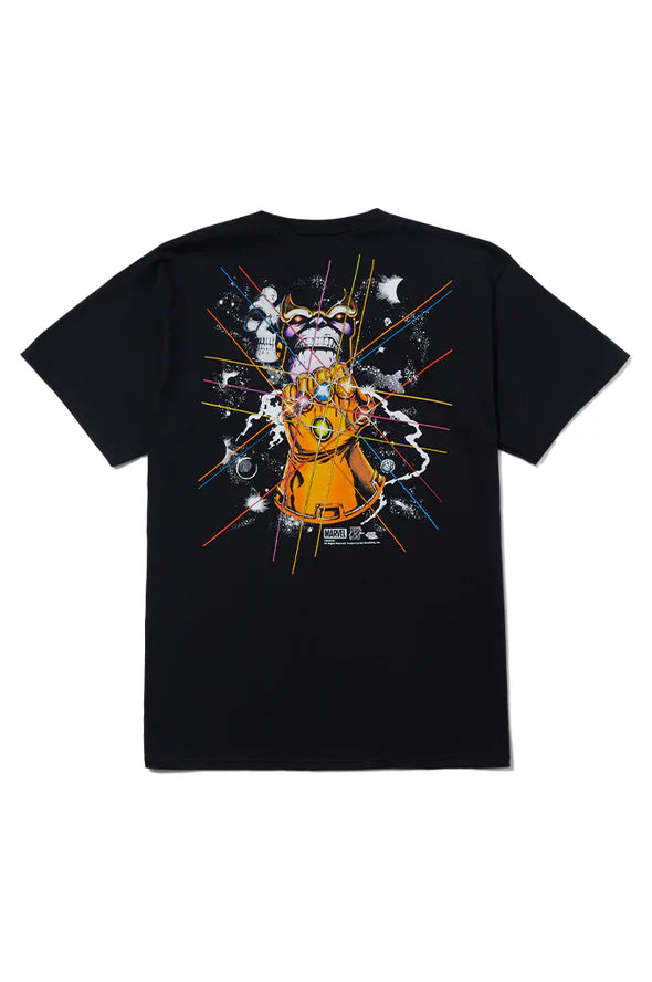 The Oh Snap SS Tee from the all new HUF x Avengers collection. This 100% cotton men's tee features colorful screen printed Avengers graphics on the chest and back with a HUF x Marvel woven inside neck label.
