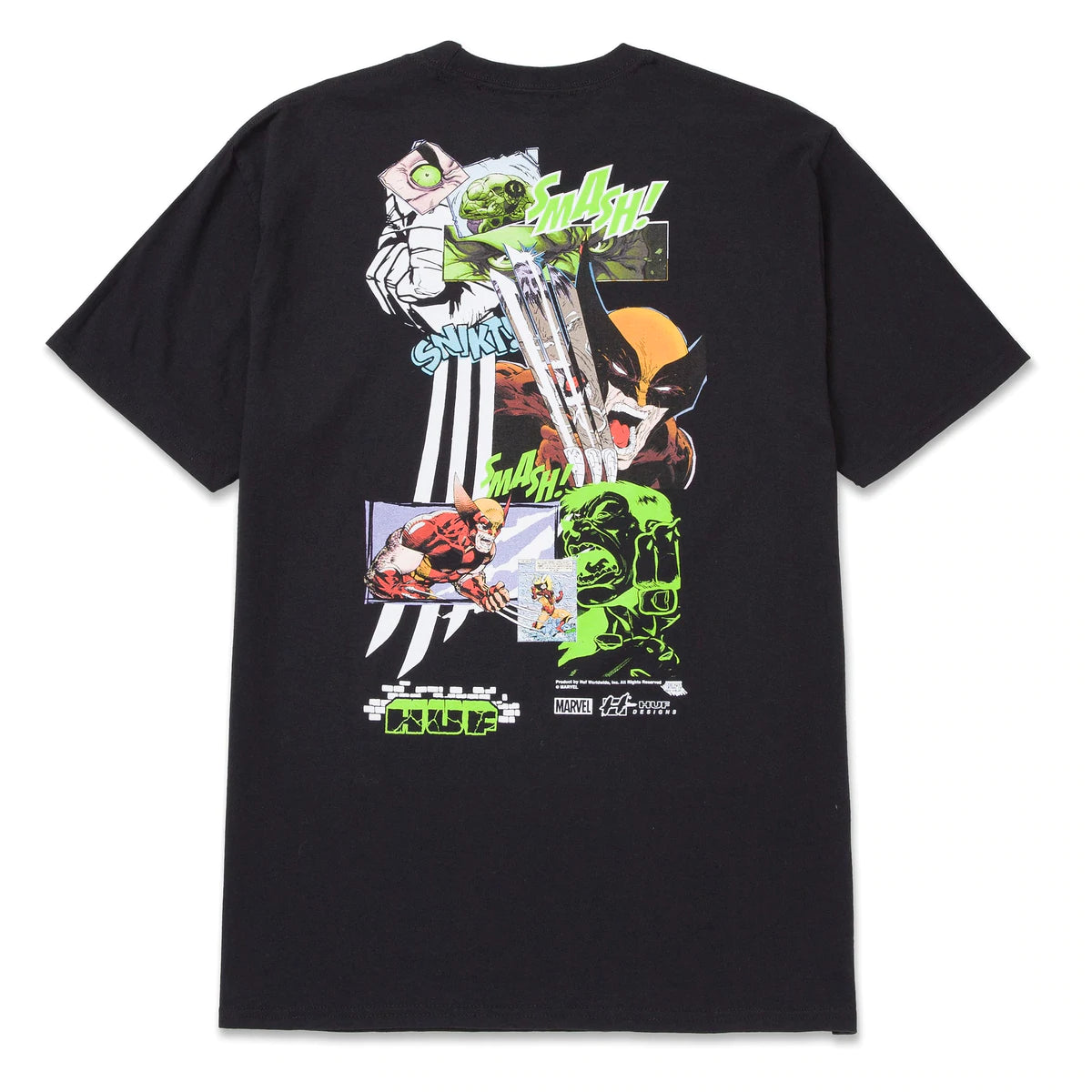 The Huf Smash Up Short Sleeve Tee is part of the HUF x Marvel Collaboration, celebrating the comics and characters of Marvel's most iconic era—and our personal favorite—the 90s. Made of pure cotton, the tee features classic Marvel characters in collaged artwork printed at the front and back.