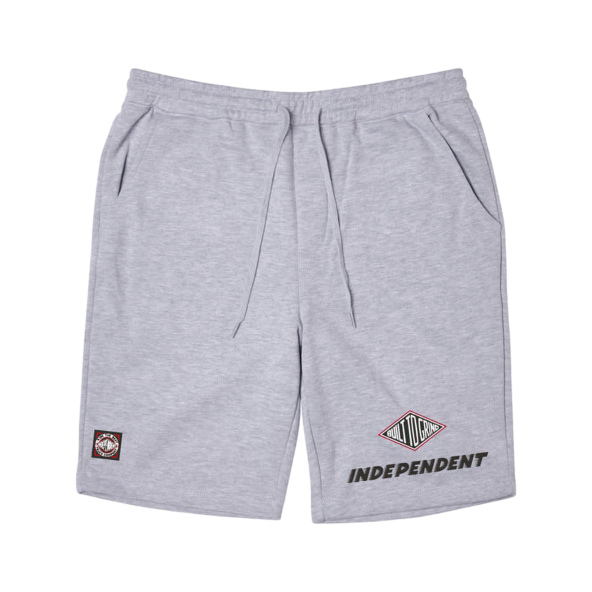 The Independent BTG Men's Fleece Shorts features elastic and drawcord waist, set-in side seam jersey lined hand pockets, patch on back pocket, small front leg Independent woven logo label patch and BTG Shear logo leg prints. BTG = Built to Grind.