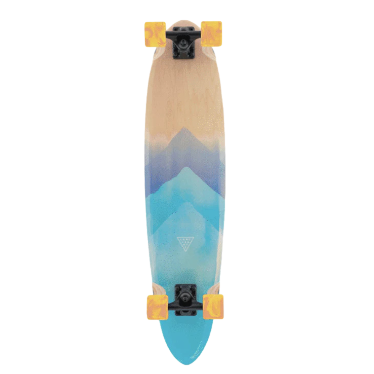 The Landyachtz Chief Watercolor Pintail Longboard Complete is a compact longboard shape that measures 36″ long and 8.65 long. It is similar to the Ripper, but even more compact for tighter carves and more agility. A slightly flexy ride and the long wheelbase give it a playful, surfy ride and lots of lean in carves. Mellow concave and a good amount of rocker will have your feet feeling at home on this board from the first ride. We set this board up with Polar Bear 105s for the most agile, responsive ride possible and finished it off with a set of 63mm 78a Easy Hawgs wheels to keep the board nice and light while still giving a fast, smooth ride.