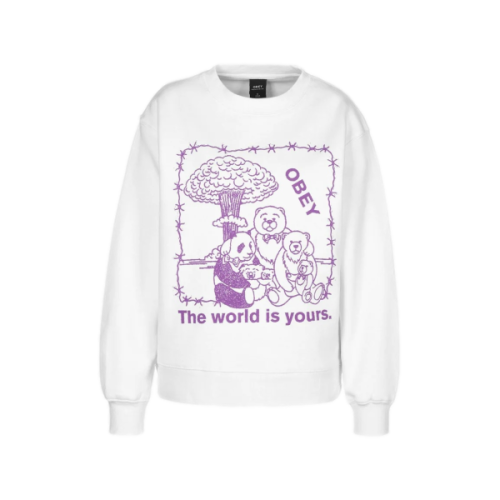 The Obey The World Is Yours Crew Sweatshirt is a box fit, relaxed crew neck sweatshirt with an 80% Cotton 20% Poly blend featuring screen print graphic.
