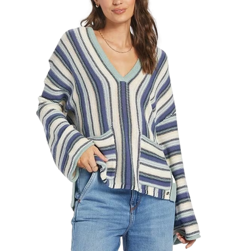 Roxy Sayulita Stripe Print V-Neck Poncho Women