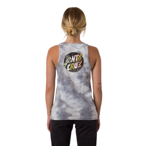 he new Santa Cruz DNA Dot women's custom knit racerback relaxed fit tank top features Santa Cruz DNA Dot screen prints at chest and back.
