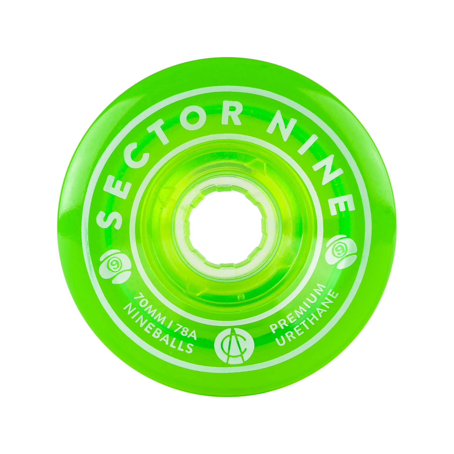 The Sector 9 Nineballs 70mm Longboard Wheels have been a long-time favorite of skaters from all walks of life. From cruising kids to freeriding chargers, we’ve got something for everyone in this collection. All these wheels provide good roll speed and come with either a natural finish for speed and grip, or a stone-ground finish for immediate slides.