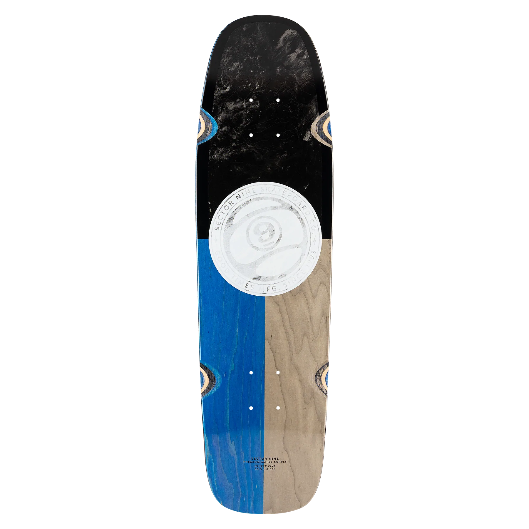 The Sector 9 Ninety Five Divide Cruiser Deck features the Yin and Yang. Light and Dark. Left and Right. Subtle and Forthright. The new Divided Collection embraces the idea of balance through opposition, with outward simplicity masking detail and complexity. The boards feature split Maple bottom plies for a contrast of color and lack thereof. While the black and white graphics above the wood appear relatively flat in color, they cover raised a marbled texture the pops in the light, giving these graphic a “hand.” The longer you hold one of the boards, the more detail you’ll notice, and that’s what we love.