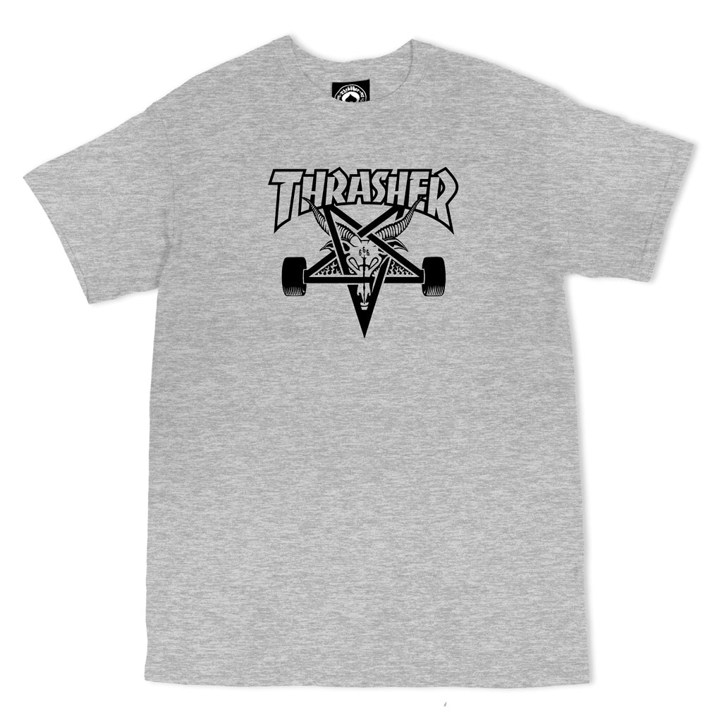 The Thrasher Skategoat T-shirt is a heavyweight, 100% pre-shrunk cotton T-shirt features the original dark & gnarly Skategoat graphic.