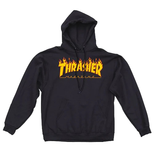 The Youth Flame Logo Hoodie from Thrasher Magazine is a midweight youth hoodie featuring the classic Thrasher Magazine flame logo screen printed on the chest.